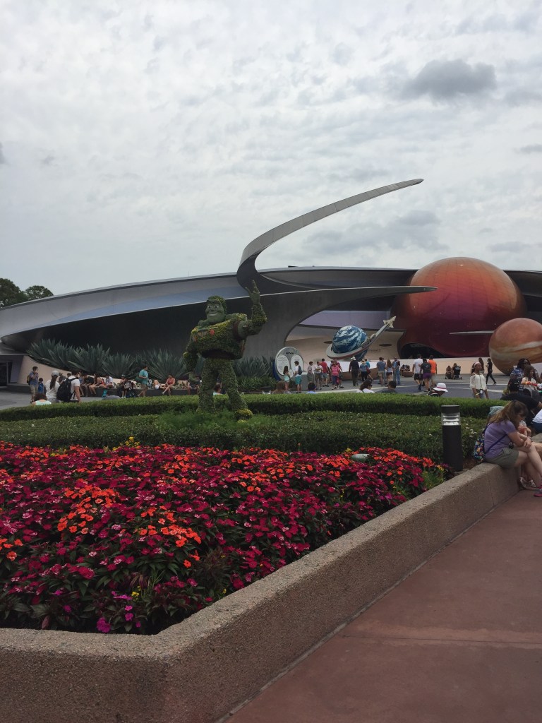 Buzz Lightyear stands in front of Mission Space.