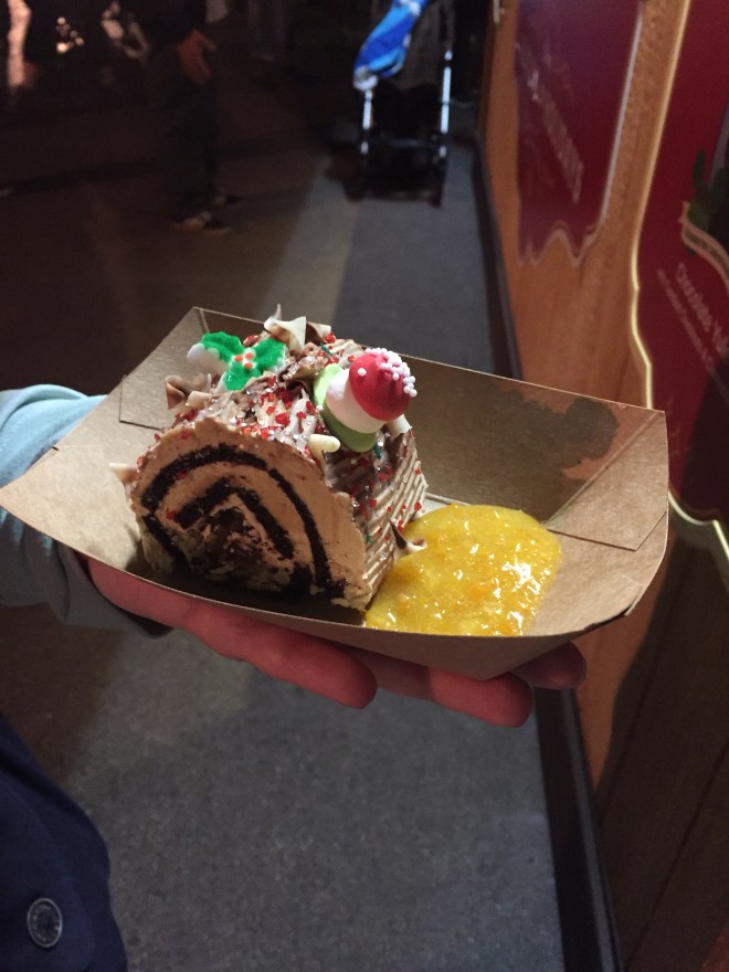 I love me some sweets and this little nugget of joy was a fun surprise. The Twist on Tradition booth (same place you can get the Yule Log at) sold these squares of horchata fudge. If you’ve eaten at Mexican/Mexi-Cali restaurants here in the Golden State you’ve probably seen horchata sold as a refreshing drink. The same flavors (sweet rice, spicy cinnamon, and a touch of cream) fill this fudge. It was great that it was packaged and sealed to go, so we saved this as a souvenir of the trip.