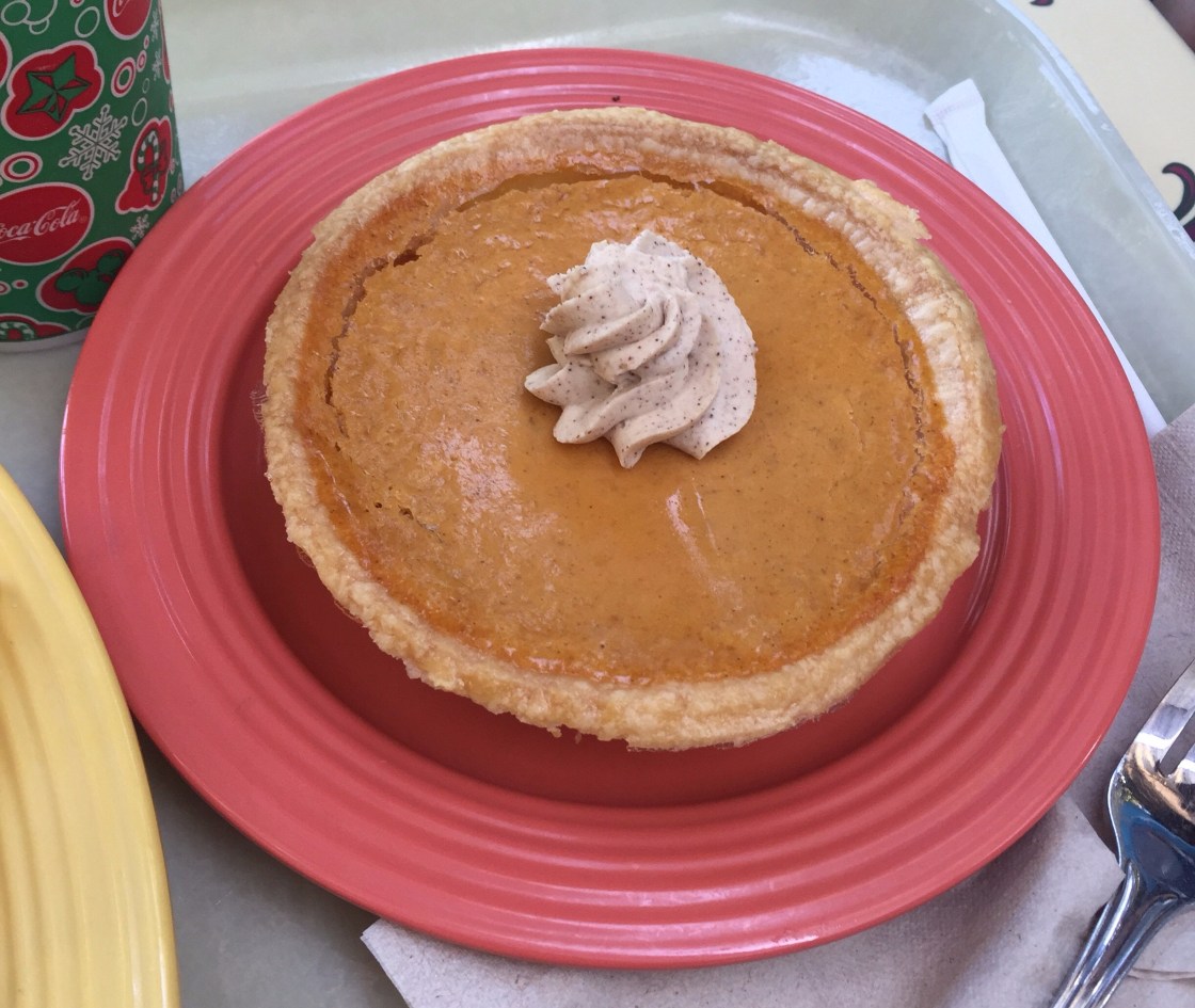 We were much happier with the pumpkin pie. This tastes like a traditional homemade pie with a great flaky, buttery crust and a balanced spice to the filling. I actually liked this more than the pumpkin pie tarts we had at the Disneyland Hotel’s Thanksgiving Feast. When I eat pumpkin pie I want it to taste like pumpkin and this was it for me. I appreciated the simplicity of the dessert and the low-level of sweetness (especially compared to the cheesecake).